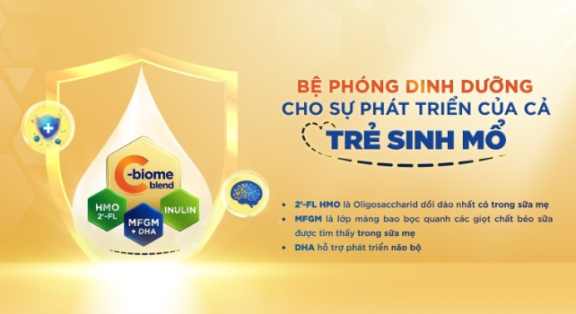 Trẻ sinh mổ có nhu cầu miễn dịch & tiêu hóa đặc thù giai đoạn đầu. Công thức có C-Biome và DHA là lựa chọn phù hợp để nuôi vi sinh – bồi miễn dịch – hỗ trợ não bộ.